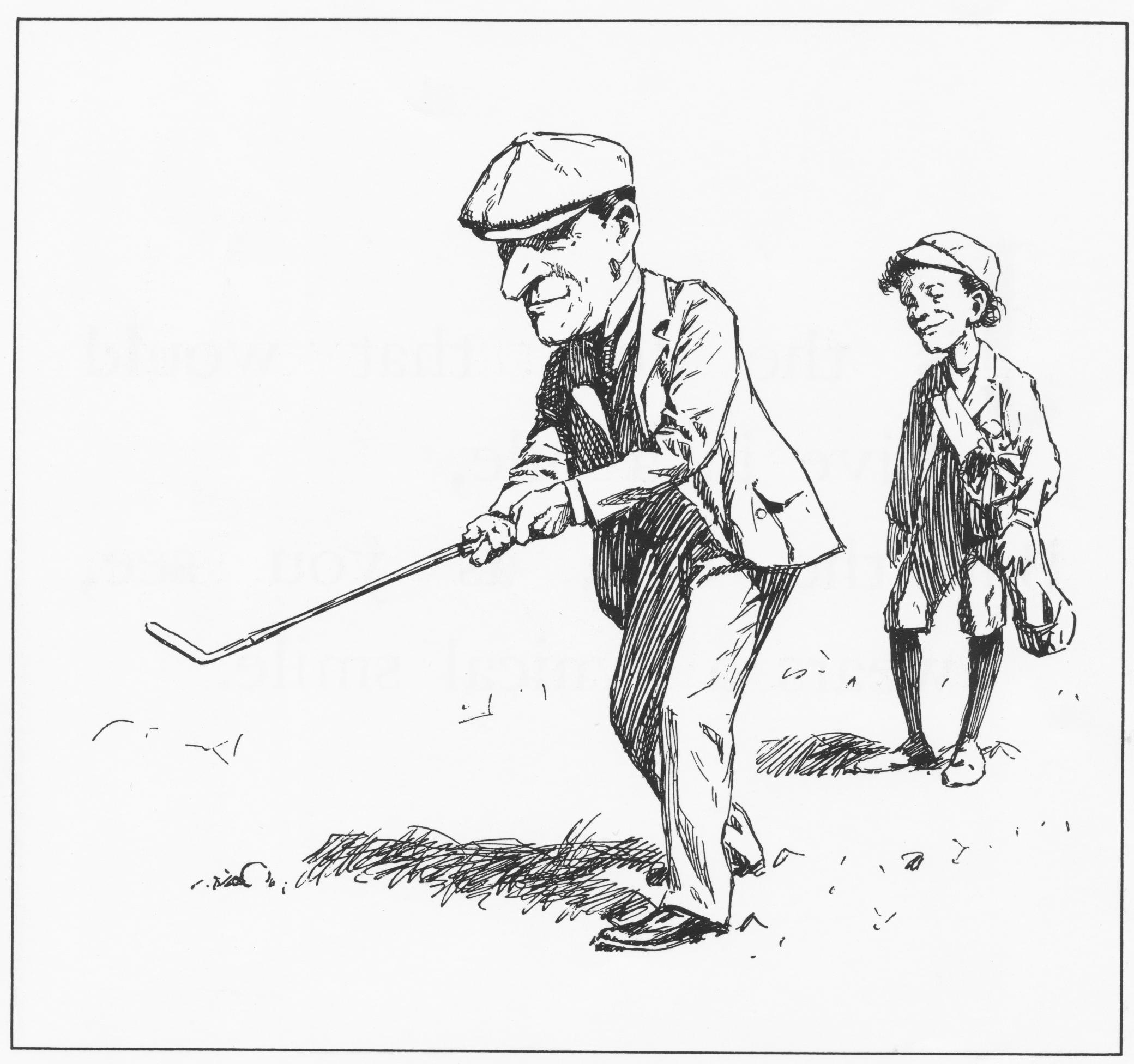 I was hoping that my golf twines would catch on, and other Twitterers would write them as well. So far no such luck. But then I found William G. Van Tassel Sutphen, a Victorian-era fiction writer, editor of the original “Golf” magazine and author of The Golfer’s Alphabet, originally published in 1898. In The Golfer’s Alphabet, Van Tassel Sutphen wrote 27 golf twines, but he was just a little early for Twitter.